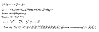 Marchand de Venise เป็นตระกูลฟอนต์สคริปต์ที่มีความประณีตออกแบบมาสำหรับ Windows โดยนำเสนอการผสมผสานระหว่างความสง่างามคลาสสิกและความโรแมนติก ตระกูลฟอนต์นี้มีทั้งสไตล์ปกติและเอียง โดยที่แบบเอียงจะให้สัมผัสที่มีชีวิตชีวา เส้นโค้งที่งดงามและเส้นที่เรียวช่วยเสริมเสน่ห์ของการเขียนด้วยลายมือแบบวินเทจ ทำให้เหมาะสำหรับโครงการที่มีความซับซ้อน เช่น การ์ดเชิญงานแต่งงานและแบรนด์หรู ฟอนต์นี้มีรูปแบบตัวอักษรที่เรียวและความแตกต่างของเส้นที่ละเอียดอ่อนทำให้มีลักษณะที่มีเสน่ห์ เหมาะสำหรับการใช้งานออกแบบที่หลากหลาย